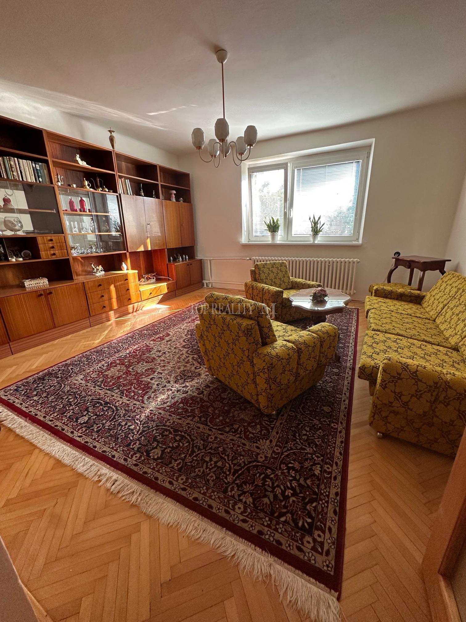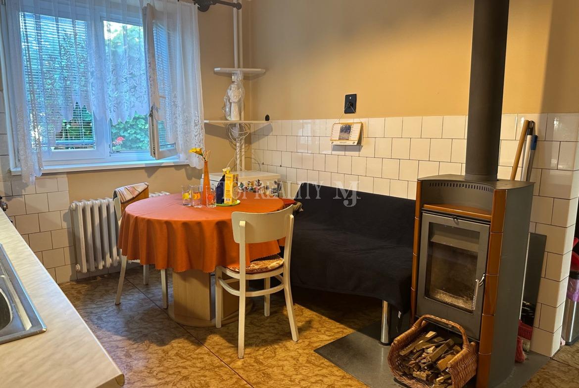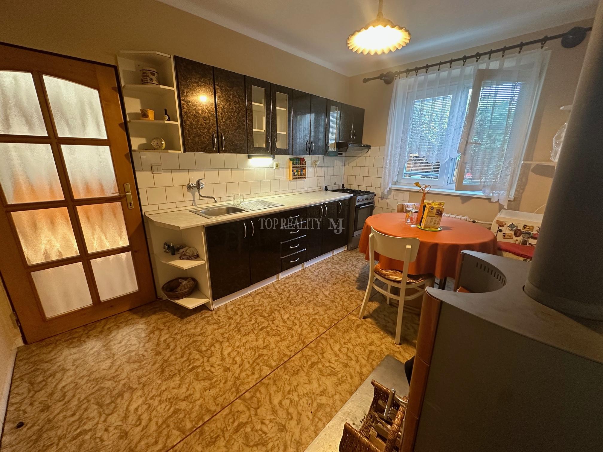 – vstupná chodba, priestranná hala-jedáleň, kuchyňa s kuchynskou linkou , sporákom , novým krbom, obývačka, dve samostatné izby, samostatná toaleta, dve kúpeľne z toho v jednej je sprchový kút a v druhej vaňa, umývadlo a automatická pračka plus úložný priestor, chodba po celej dĺžke s úložným priestorom, špajza, vstup do pivnice, krásne drevené schodisko čo dotvára k samotnej miestnosti svoje čaro s otvoreným priestorom na poschodie.