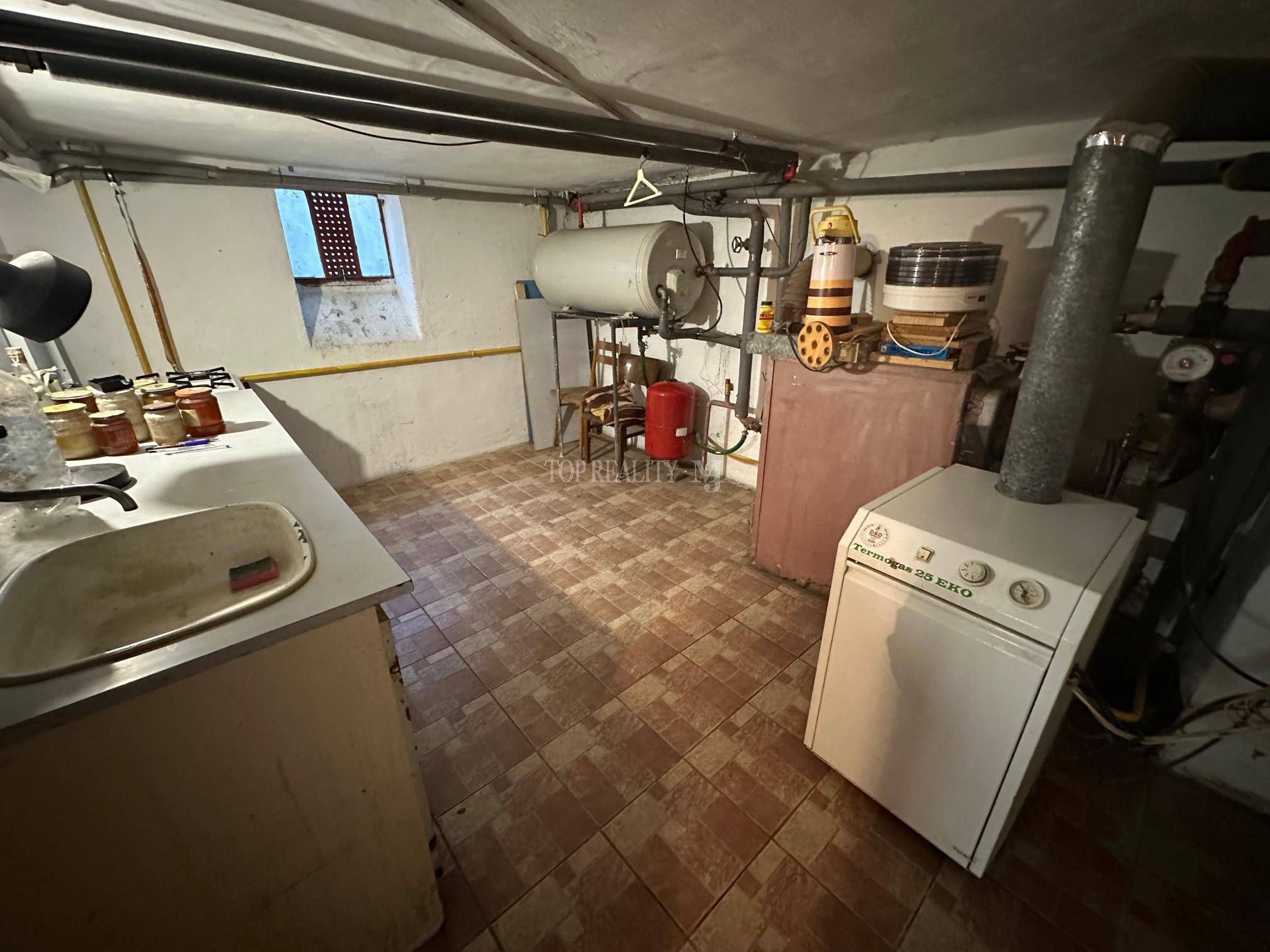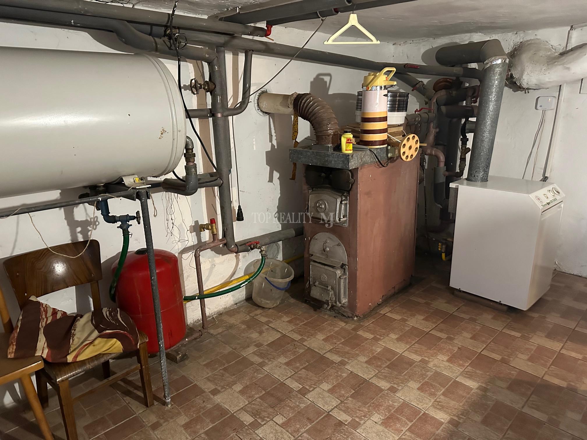 Rodinný dom je čiastočne podpivničený kde sa nachádza veľká technická miestnosť s kotlom, dve samostatné miestnosti na odkladanie. Vstup do zadnej časti domu. Dom disponuje s predzáhradkou kde je jazierko s neskutočnou výsadbou okrasnej zelene. Tu načerpáte oázu a relax.