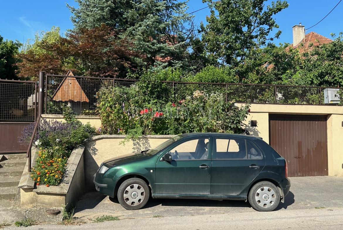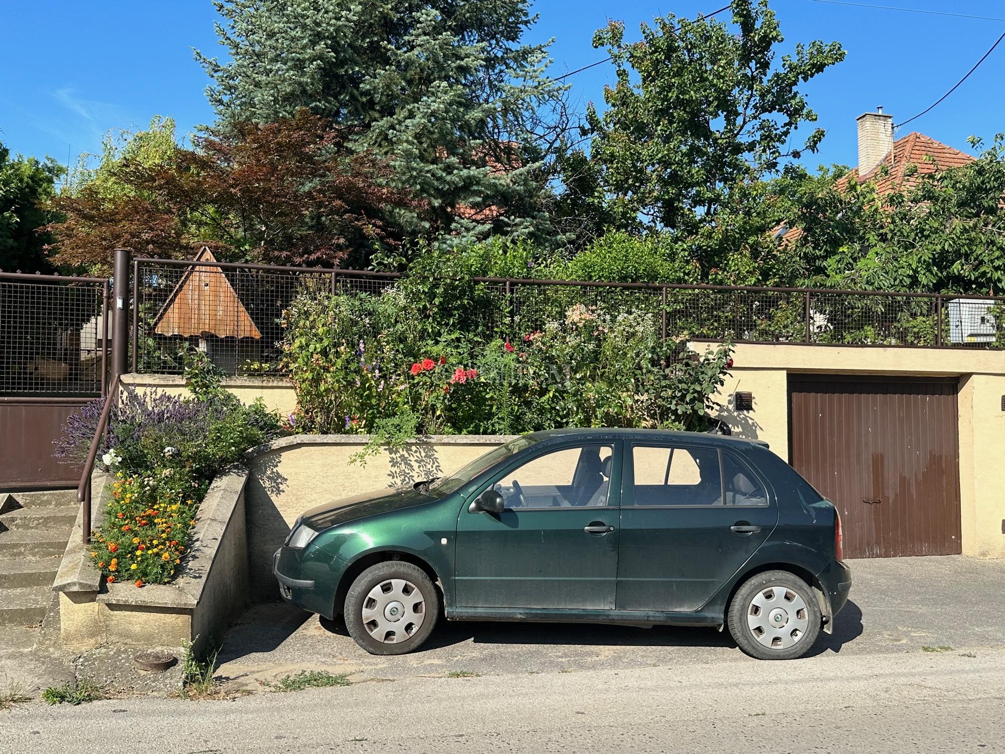 Pod brehom sa nachádza garáž na jedno auto. Parkovanie vo dvore rodinného domu s viacerými autami.