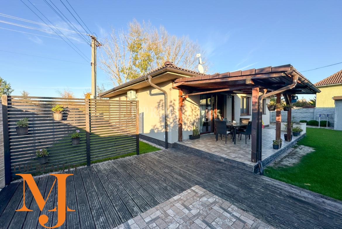 V celom dome použité kvalitné podlahy, interiérové dvere so zárubňami, omietky, upravené stropy, predpríprava na krb veľkou výhodou, klimatizácia. Dom ostáva čiastočne zariadený po dohode. Minimálne náklady na bývanie a to len 100 Eur .